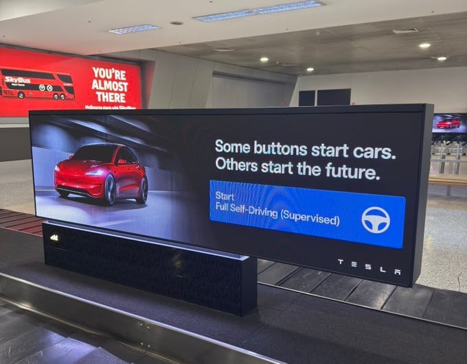 This isn’t the only fresh form of advertising for Tesla — it has now taken up some billboards in airports to advertise for the freshly launched FSD Supervised service in the country.