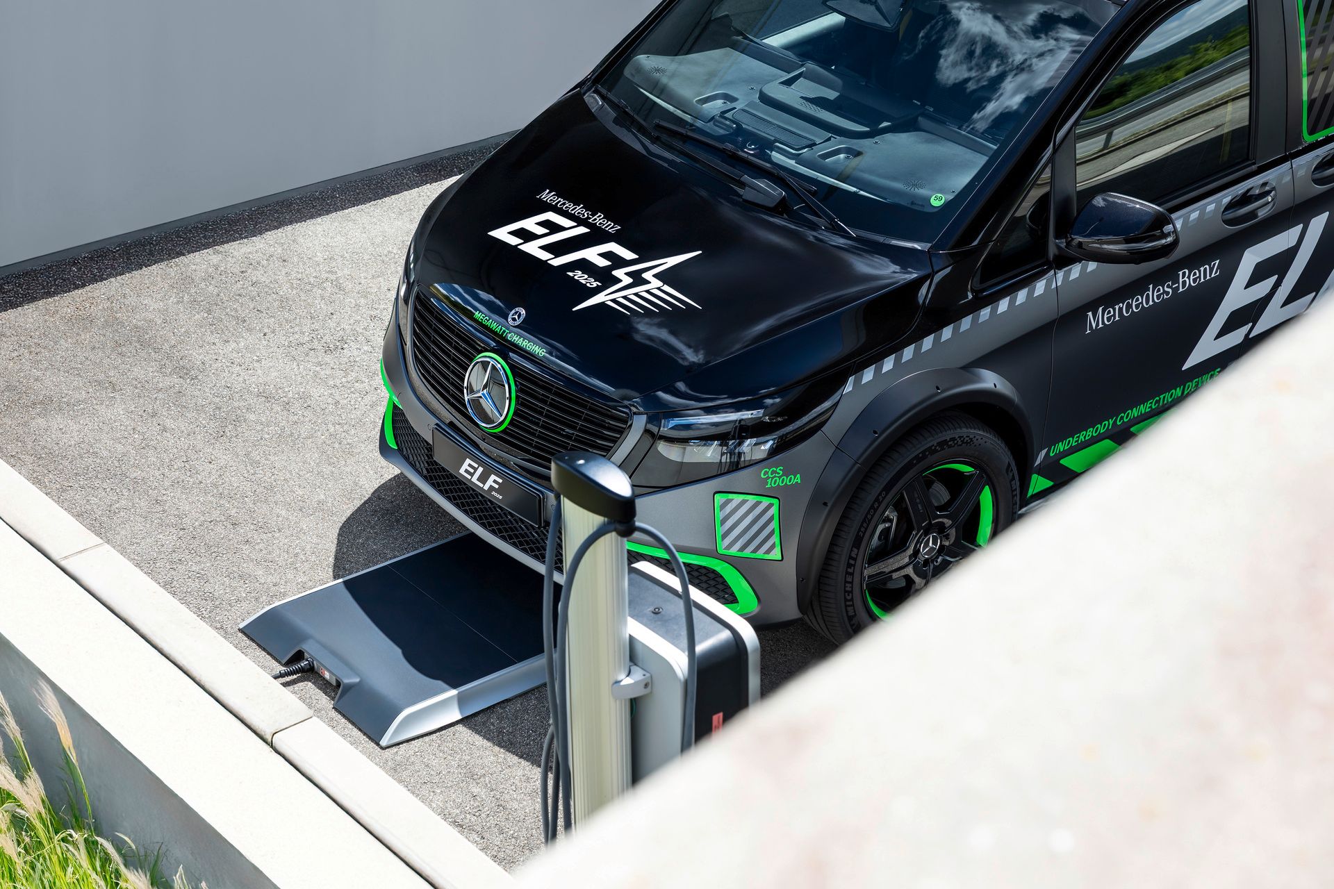 EVwire brief: Mercedes-Benz has created an experimental charging vehicle called ELF (for Experimental-Lade-Fahrzeug) to test various innovations for a seamless and intelligent charging experience. The electric van can handle charging with CCS and MCS, bidirectional charging with AC and DC, as well as both inductive and conductive charging.