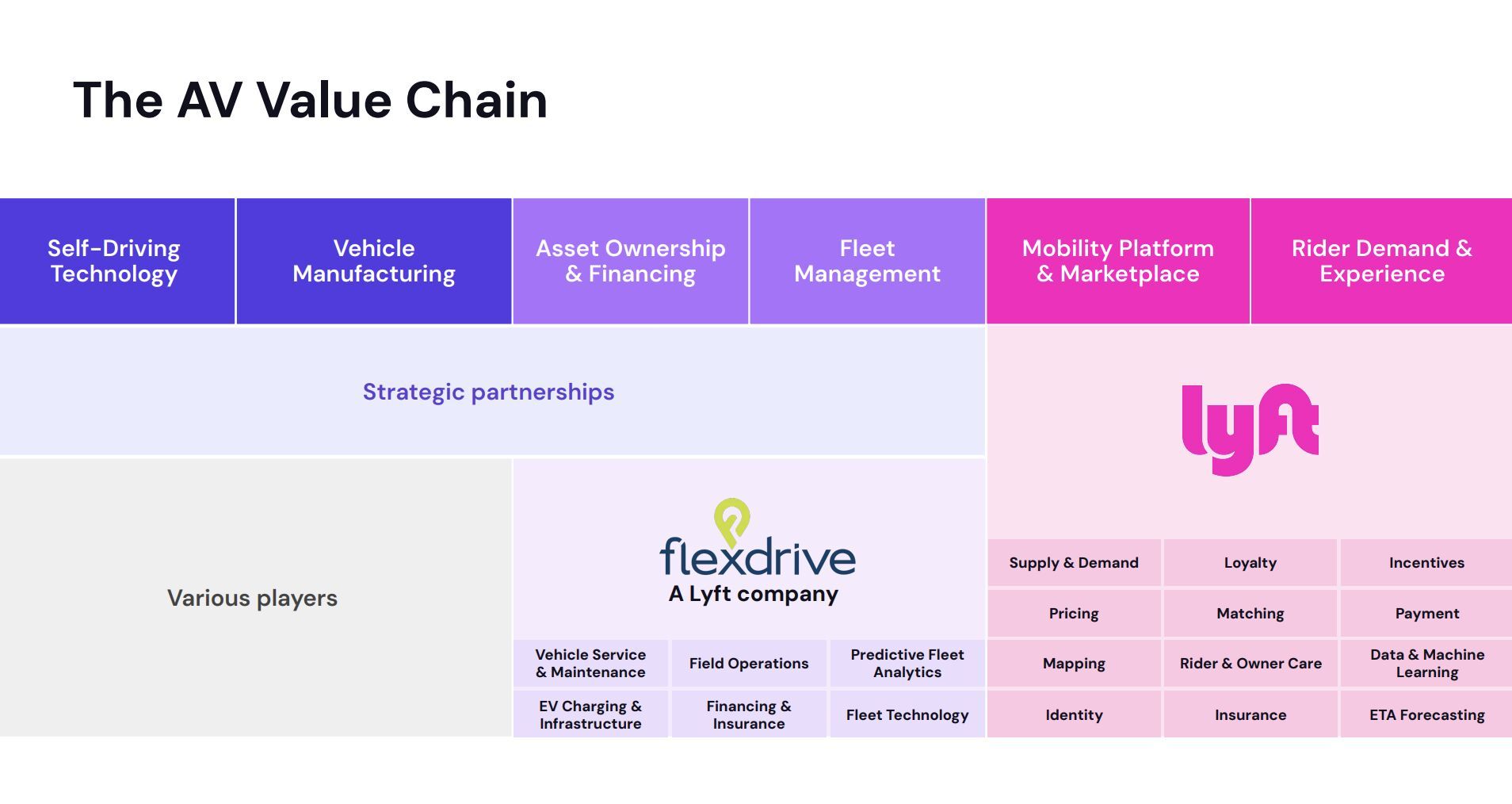 As for Lyft’s plans in the AV world in terms of partnerships, here’s what they’ve laid out in their docs as the AV value chain and where Lyft & flexdrive places. We’ll do a deeper dive on Lyft’s other partners soon: