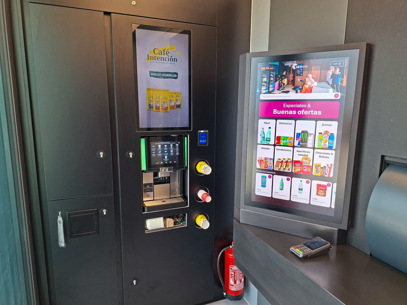 At the core of the lounge is the bk World Robotic Shop, offering a self-service–focused selection of snacks, drinks and coffee specialties. Orders can be placed and paid for contactlessly via large ordering terminals. In addition to the toilets inside, you might’ve also noticed the Flaven Five pizza vending machine outside next to the lounge.