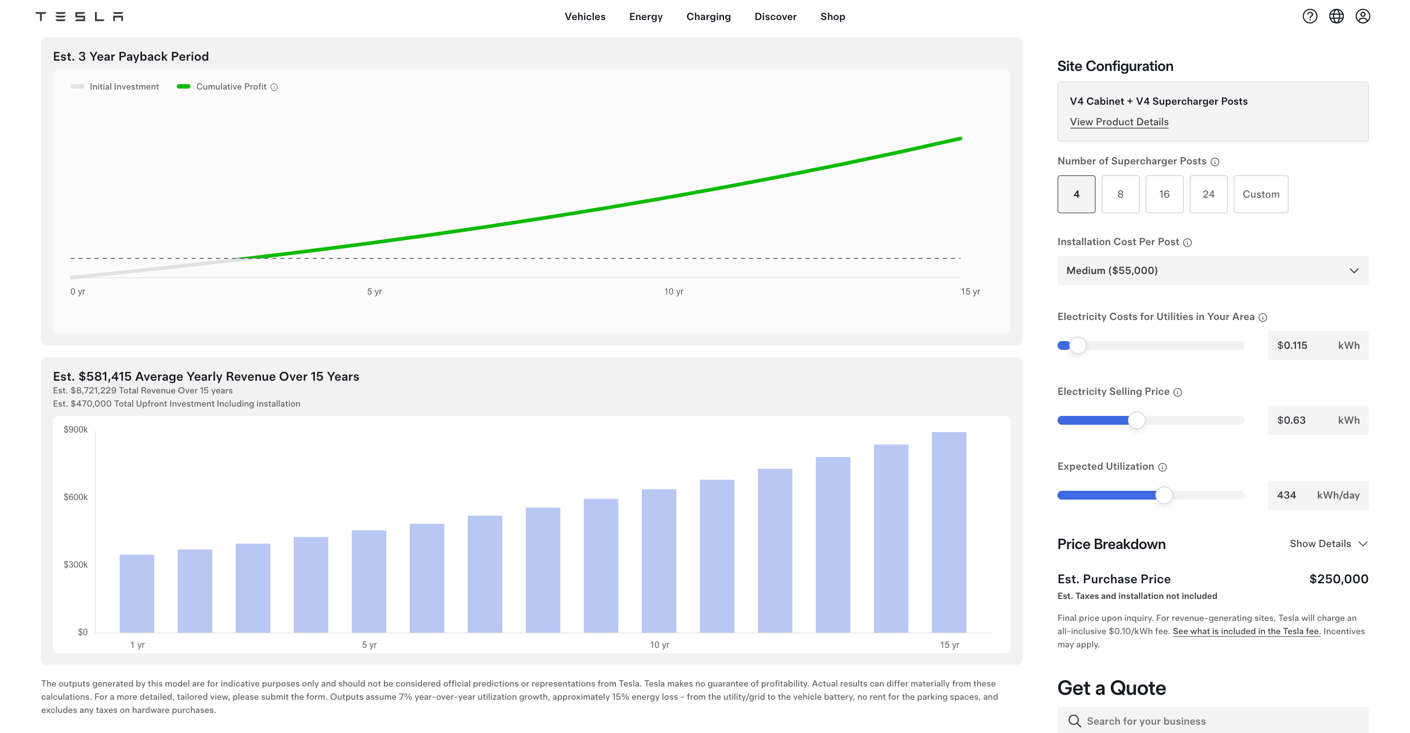 Here’s a sample estimate from Tesla for a four-post Supercharger in a New Jersey suburb: